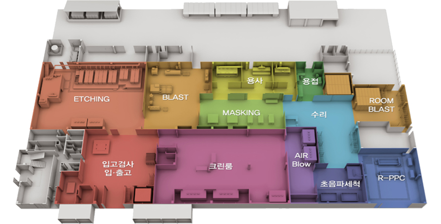 FPD생산공정에서 발생되는 오염물을 Shield표면에서 효과적으로 제거할 수 있는 친환경 제막기술 보유 및 운영